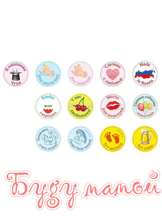 В наборе 13 оригинальных наклеек диаметром 10 см