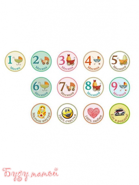 В наборе 13 оригинальных наклеек диаметром 10 см