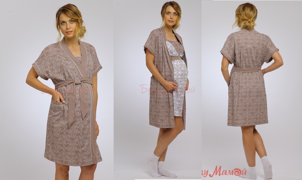 Халат можно дополнить сорочкой из этой же серии (артикул G*U S*R 12*39 T*K 3*52), которая предусмотрена как на время беременности, так на время кормления ребенка грудью.