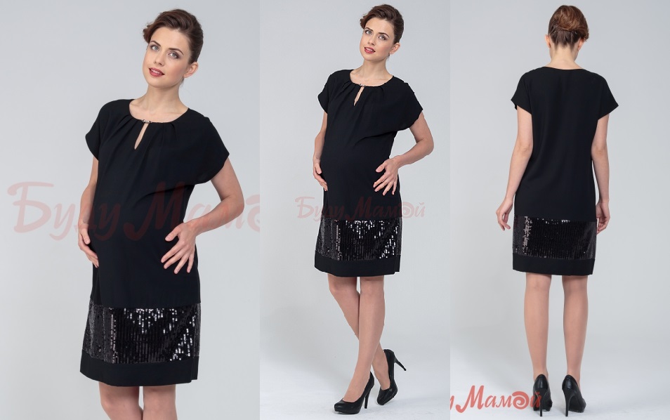 Благородное мерцание пайеток и фурнитуры создают настроение праздника! Платье для будущих мам выполнено из мягкой креповой ткани, обеспечивающей максимальный комфорт. Складки по переду создают необходимый объем на растущий животик, а цельнокроеные рукава создают модный силуэт.